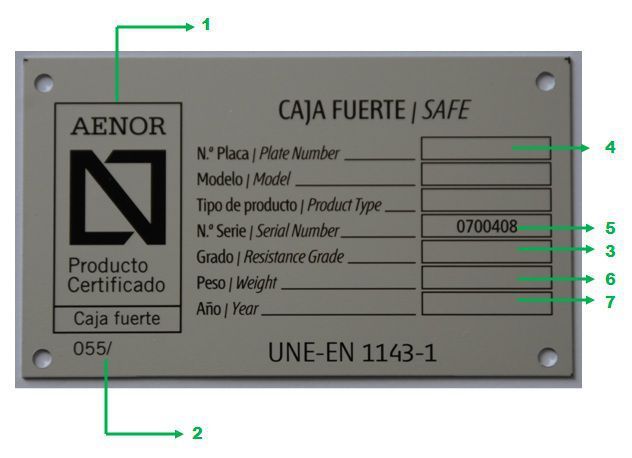 Compruebe que en su interior haya una placa igual a la de la fotografia en la que conste los siguientes datos: