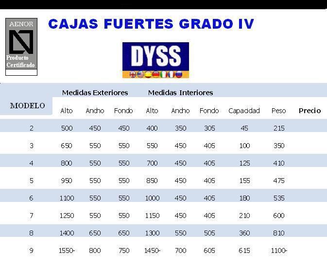 Producto certificado por AENOR, Grado IVsegún Norma Europea UNE EN 1143-1 para ver certificado haz clic aquí AENOR