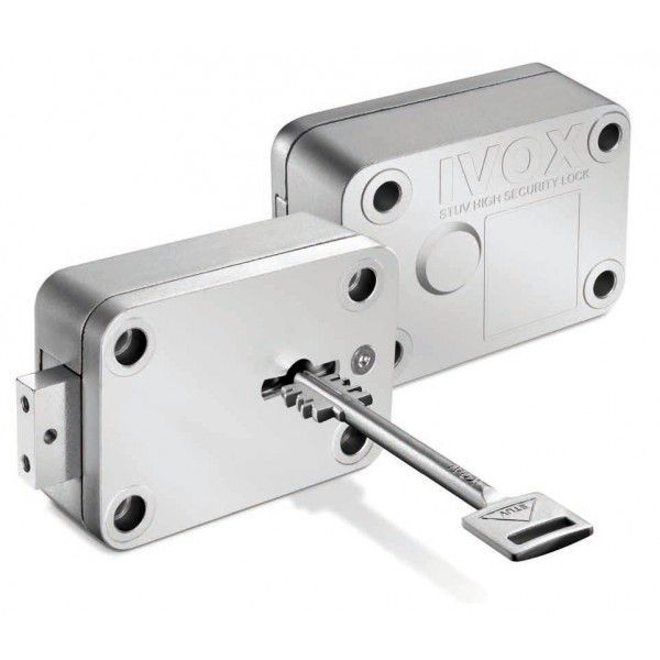 Cerradura de llave con llave de 130mm de gorjas de doble pala de 8 gorjas. Certificada en VdS Class 2, EN 1300 B (homologación segun cajas fuertes, armeros y puertas de camaras acorazadas nivel III, IV y V)